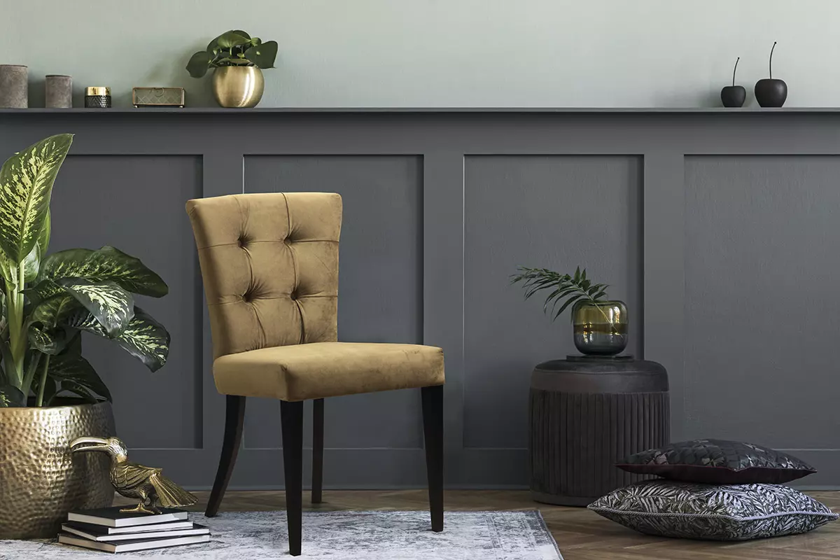Dekoracyjne pinezki i ozdobne kółko w krześle Mirano z pewnością przyciągają wzrok niejednej osoby. Wspaniale zaprezentuje się przy stole w jadalni dodając całości aranżacji szyku i elegancji. Oparcie posiada ozdobne guziki, a siedzisko jest miękkie i wygodne zapewniając wysoki komfort siedzenia.