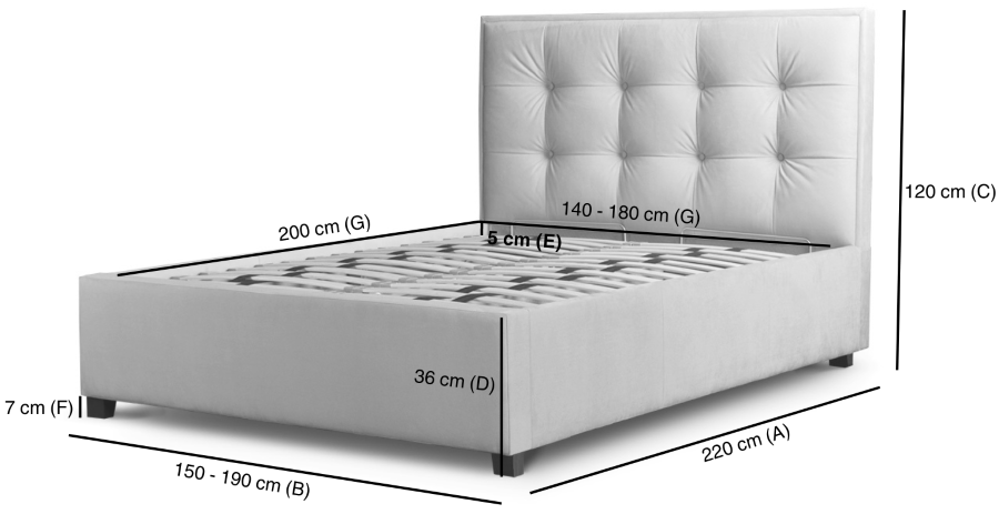 Łóżko Grappa to doskonały sposób, aby Twoje łóżko stało się centralnym punktem Twojego pokoju. Odważny kwadratowy wzór i luksusowe wykończenie z guzikami doskonale ze sobą współgrają, równoważąc zarówno nowoczesny, jak i tradycyjny wygląd. Zagłówek ma wysokość 120 cm, ale oferujemy również inną wersje łóżka z zagłówkiem wysokim na 150 cm.