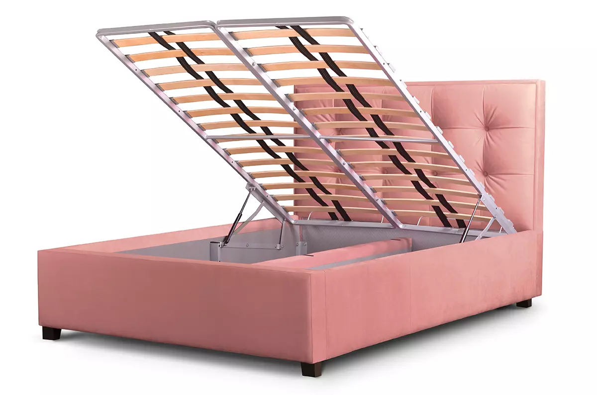 Niskie łóżko z pojemnikiem i zagłówkiem w kwadraty Grappa