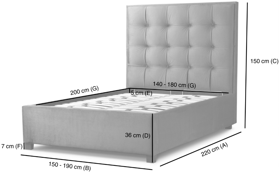 Łóżko Grappa to doskonały sposób, aby Twoje łóżko stało się centralnym punktem Twojego pokoju. Odważny kwadratowy wzór i luksusowe wykończenie z guzikami doskonale ze sobą współgrają, równoważąc zarówno nowoczesny, jak i tradycyjny wygląd. Zagłówek ma wysokość 150 cm, ale oferujemy również inną wersje łóżka z zagłówkiem niższym na 120 cm.