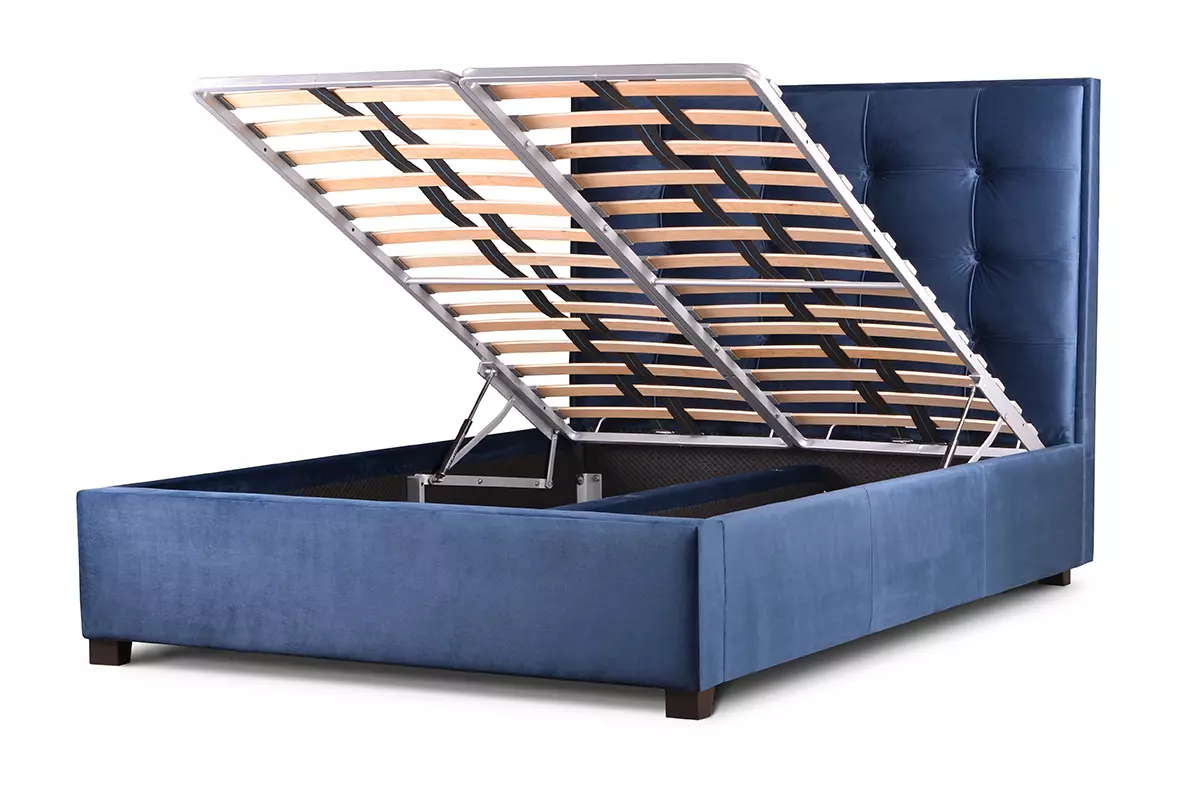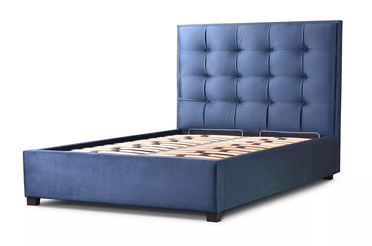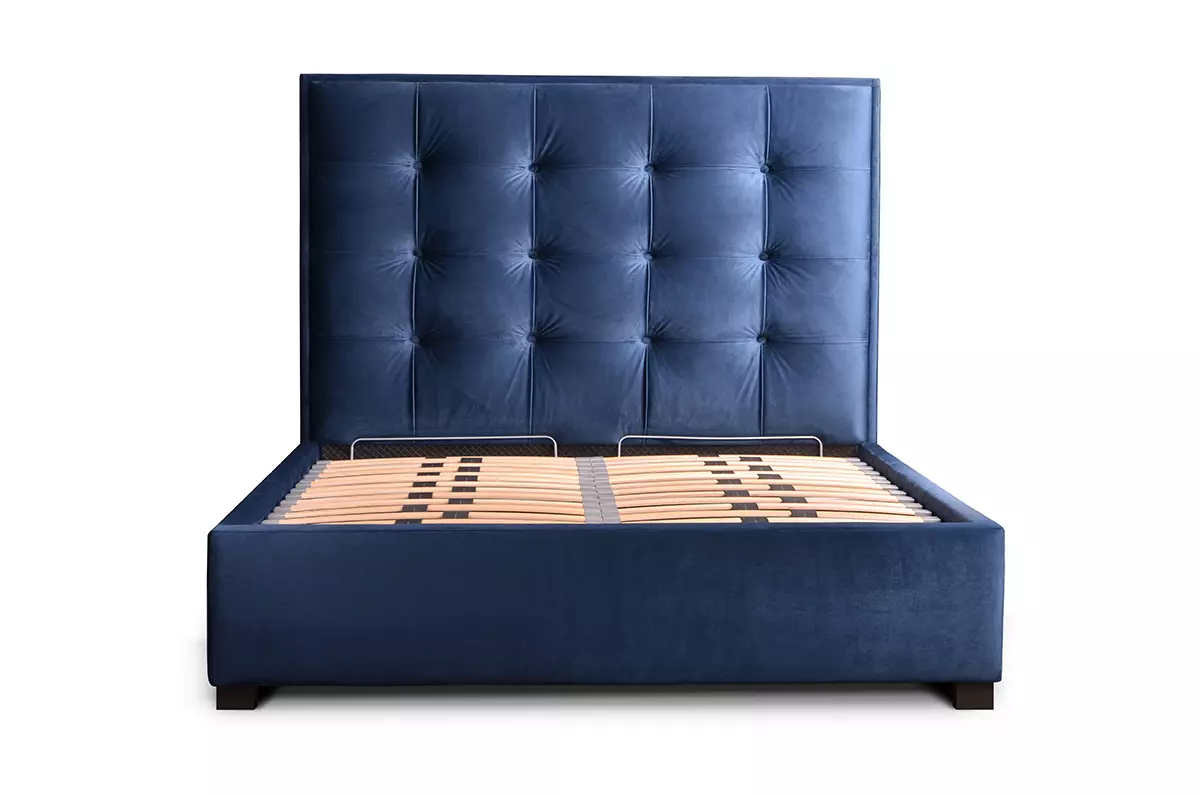 Wysokie łóżko z pojemnikiem i zagłówkiem w kwadraty Grappa
