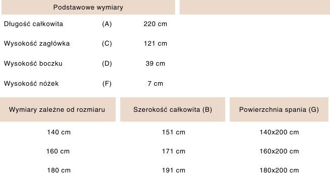 *Wymiary mogą się różnić +/- 2 cm. Materiał przedstawiony na wizualizacjach - Magic Velvet 2274.
