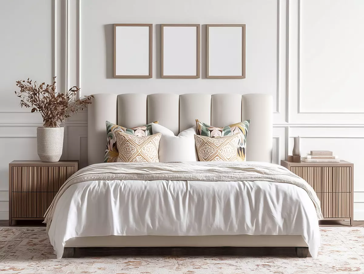 Łóżko Lorena to stylowy akcent do nowoczesnej sypialni, który łączy funkcjonalność z designerskim wykończeniem. Charakterystyczny zagłówek z miękkich, pionowych paneli dodaje wnętrzu elegancji i tworzy komfortowe oparcie do wieczornego relaksu.