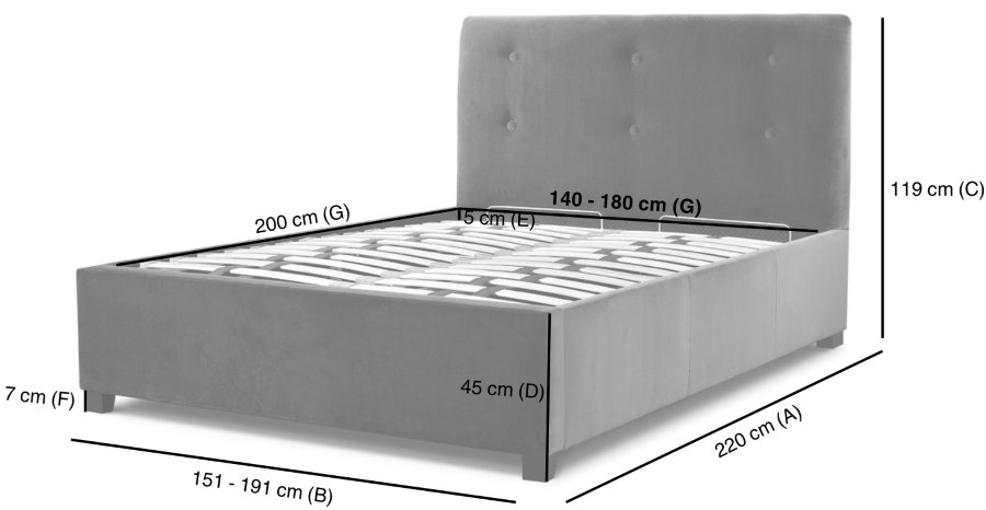 Łóżko z pojemnikiem i guzikami w zagłówku Samoa