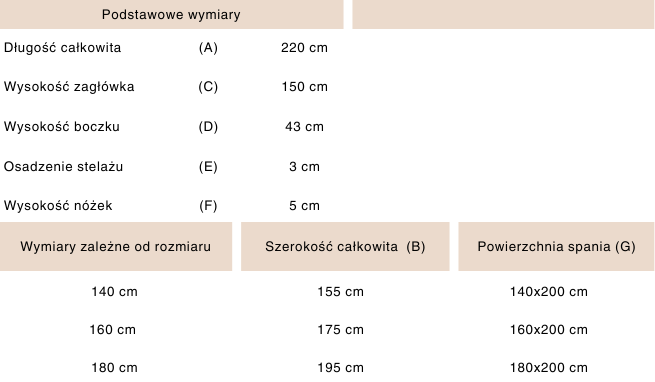 *Wymiary mogą się różnić +/- 2 cm. Materiał przedstawiony na wizualizacjach - Magic Velvet 2274.