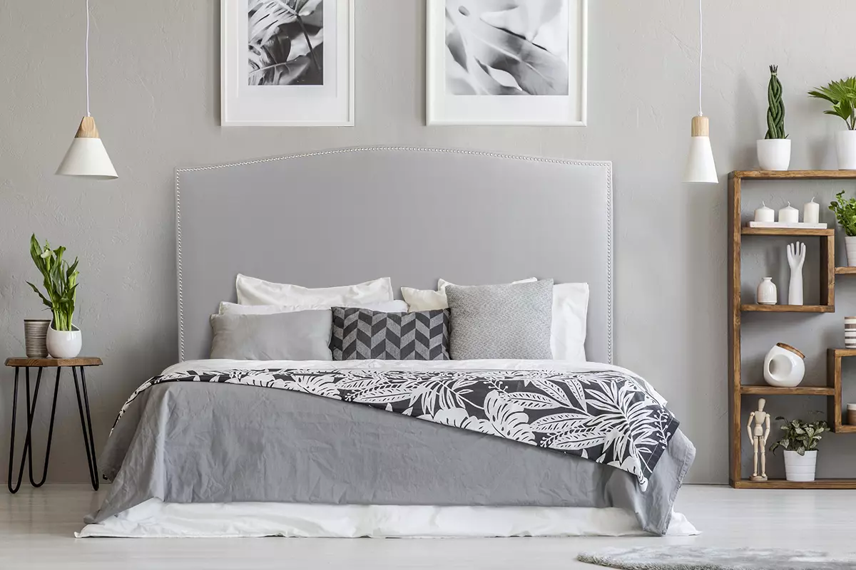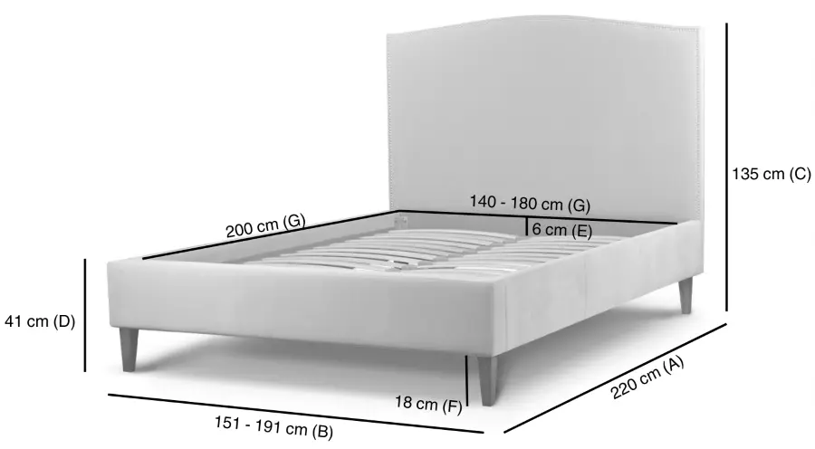 Zaokrąglony zagłówek jest naturalnym pięknem łóżka Caldera. Rząd chromowanych ćwieków tylko podkreśla jej piękno. Daliśmy jej wysokie nogi, aby łatwiej było Ci wchodzić i wychodzić z łóżka. Miękkie, wyściełane wezgłowie, na którym można się wygodnie oprzeć podczas czytania lub oglądania telewizji w łóżku.