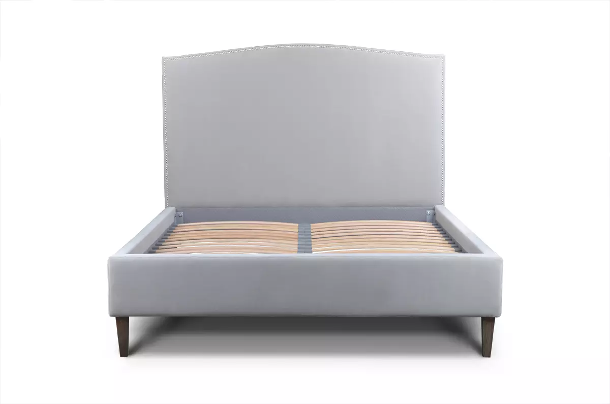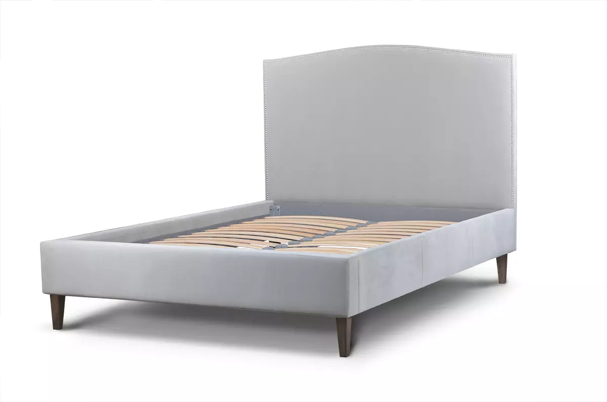Klasyczne łóżko z zaokrąglonym zagłówkiem i ćwiekami Caldera