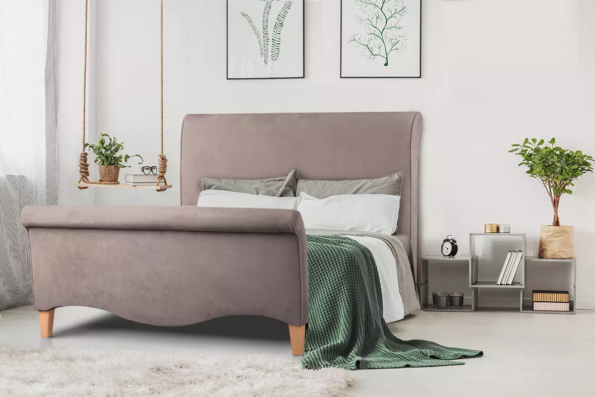 Łóżko Como emanuje stylem i wyrafinowaniem. Eleganckie linie i dbałość o szczegóły w lekkim pochyleniu wezgłowia i zanóżka sprawiają, że Como jest naprawdę pięknym łóżkiem. Uwagę zwraca kształt łóżka przypominający sanie. Cały zagłówek jest obity tkaniną tapicerską.