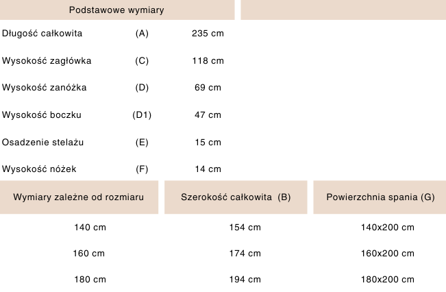 *Wymiary mogą się różnić +/- 2 cm. Materiał przedstawiony na wizualizacjach - Magic Velvet 2239.