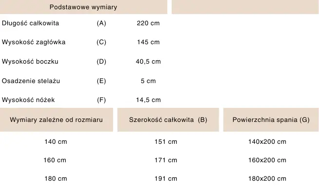 *Wymiary mogą się różnić +/- 2 cm. Materiał przedstawiony na wizualizacjach - Magic Velvet 2262.