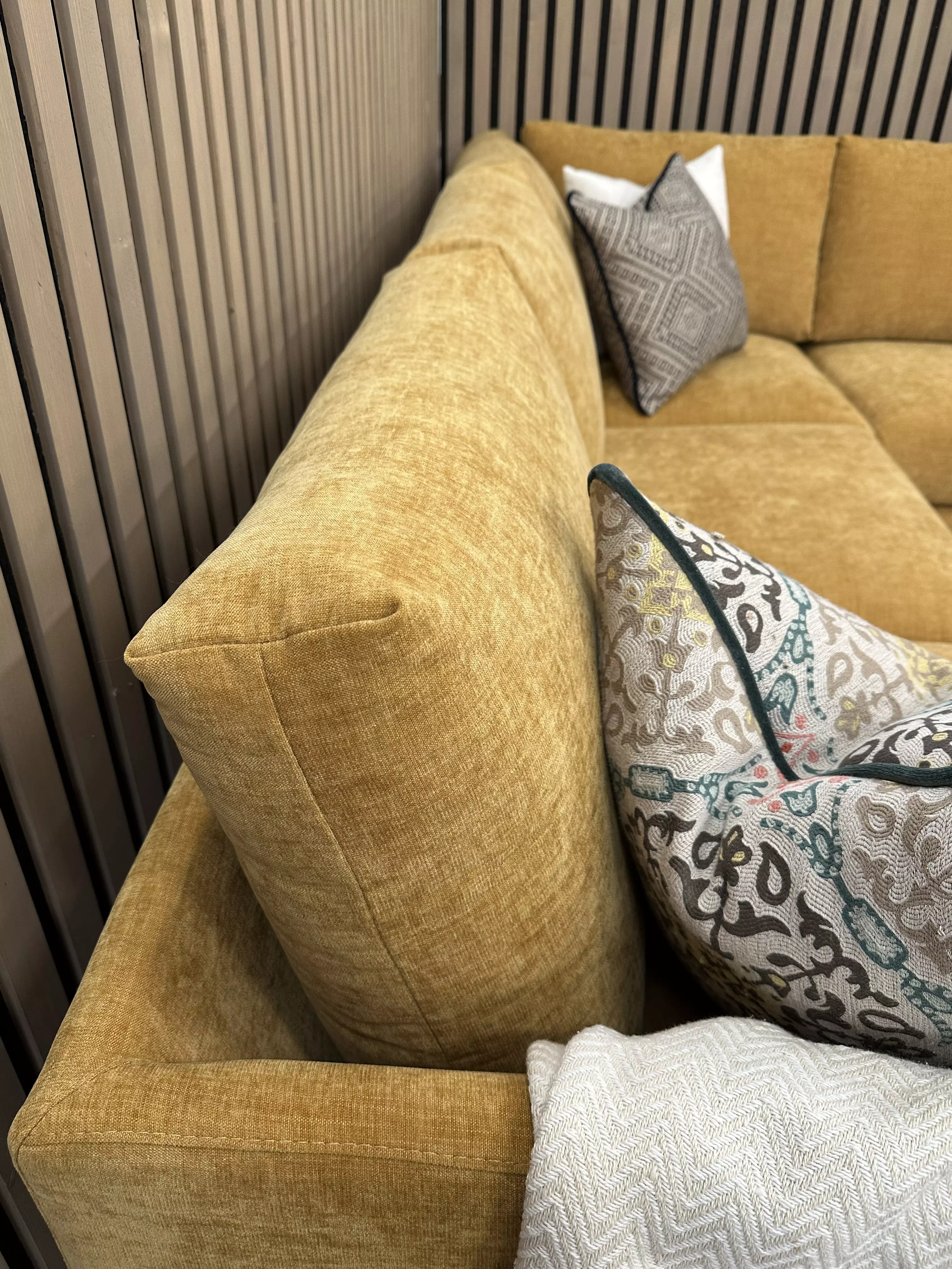 Symetryczny narożnik Dolce ma prosty i nowoczesny wygląd. Niezwykle smukła rama tego narożnika została zaprojektowana z myślą o komforcie. Wąskie podłokietniki, głębokie siedzisko i wysokie oparcie zapewniają więcej miejsca do wypoczynku na bardzo miękkich poduszkach.