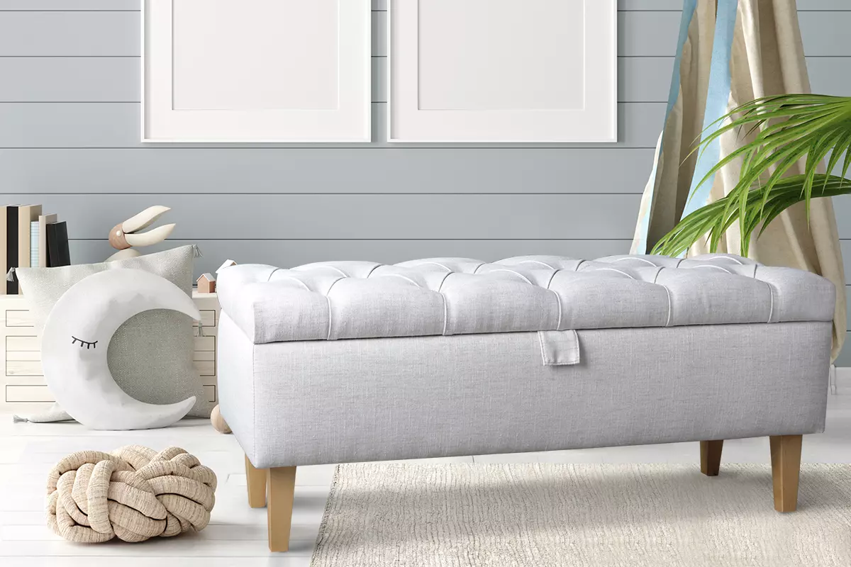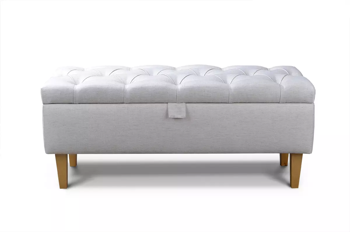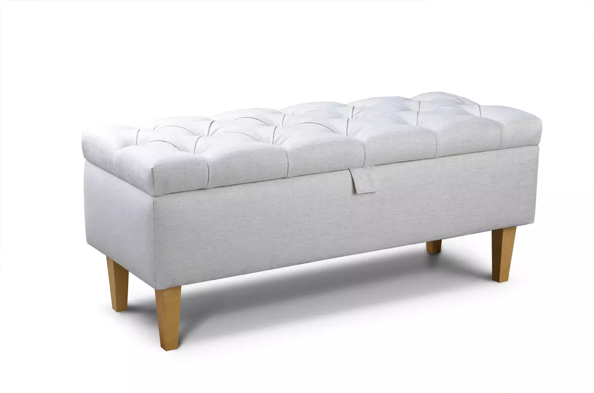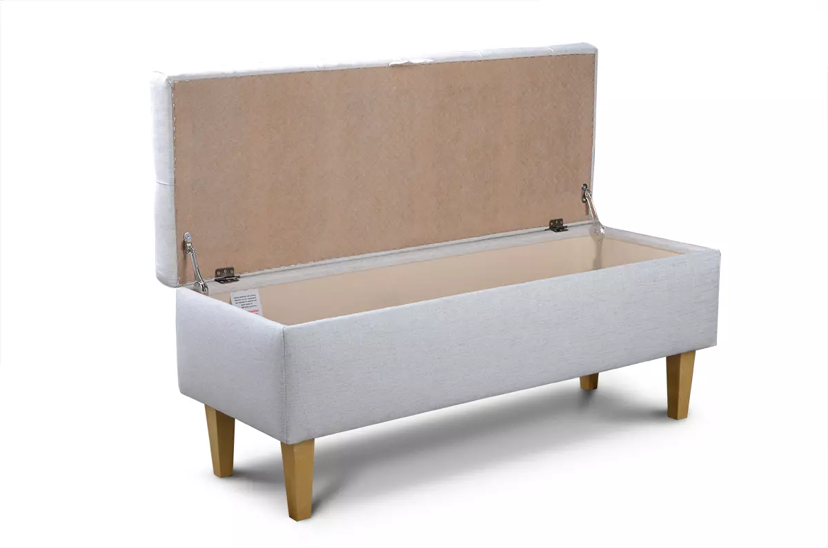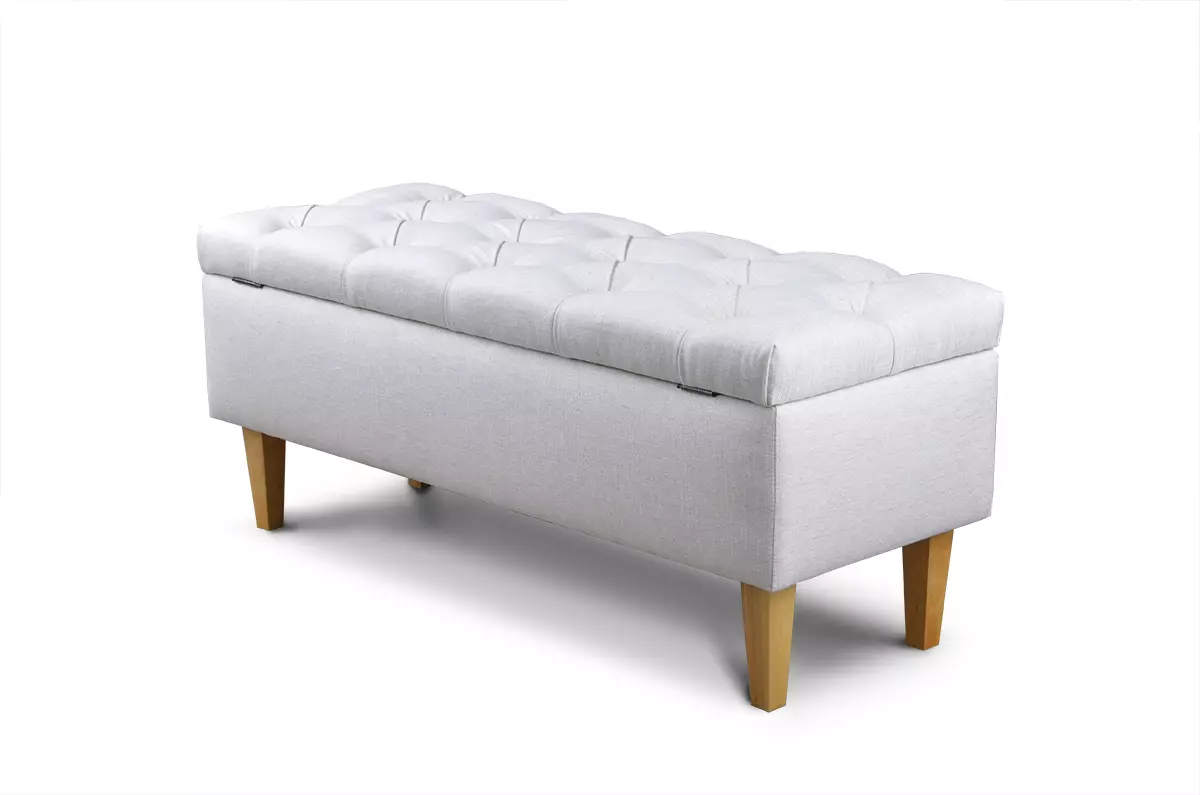 Podnóżek z pojemnikiem Klawario do przedpokoju to niezwykle praktyczny mebel, a na dodatek prezentuje się on efektownie w salonie czy przedpokoju. Z powodzeniem sprawdzi się jako podnóżek do ulubionego fotela typu uszak lub jako puf, na którym można wygodnie przysiąść. Klawario ma pojemne miejsce do przechowywania pod siedziskiem, dzięki czemu możesz mieć wszystko pod ręką, a jednocześnie utrzymać porządek wokół sofy. Stoi on na wysokich nóżkach dzięki czemu bez problemu będzie można utrzymać porządek również pod podnóżkiem.
