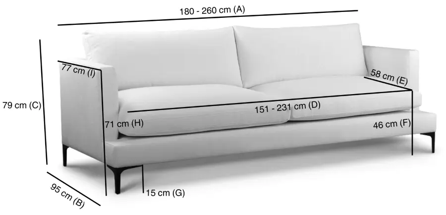 sofa 3,5 os. (1 paczka) : 242x97x55 cm
