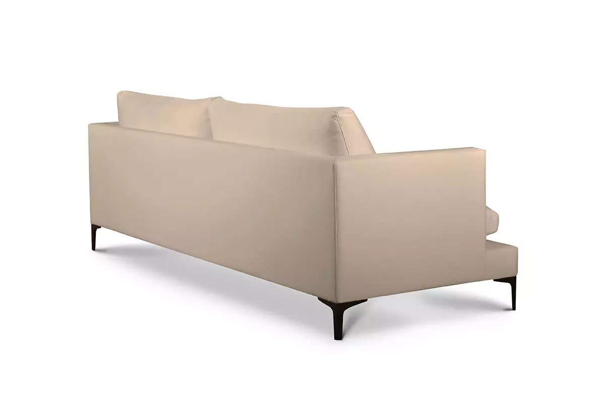 Sofa Frescia dzięki nowoczesnej linii sprawdzi się jako uzupełnienie każdego salonu. Proste, szerokie ramiona oraz wysokie poduszki siedziska nadają jej ciekawego wyglądu. Czarne, metalowe nóżki dodają jej charakteru.
