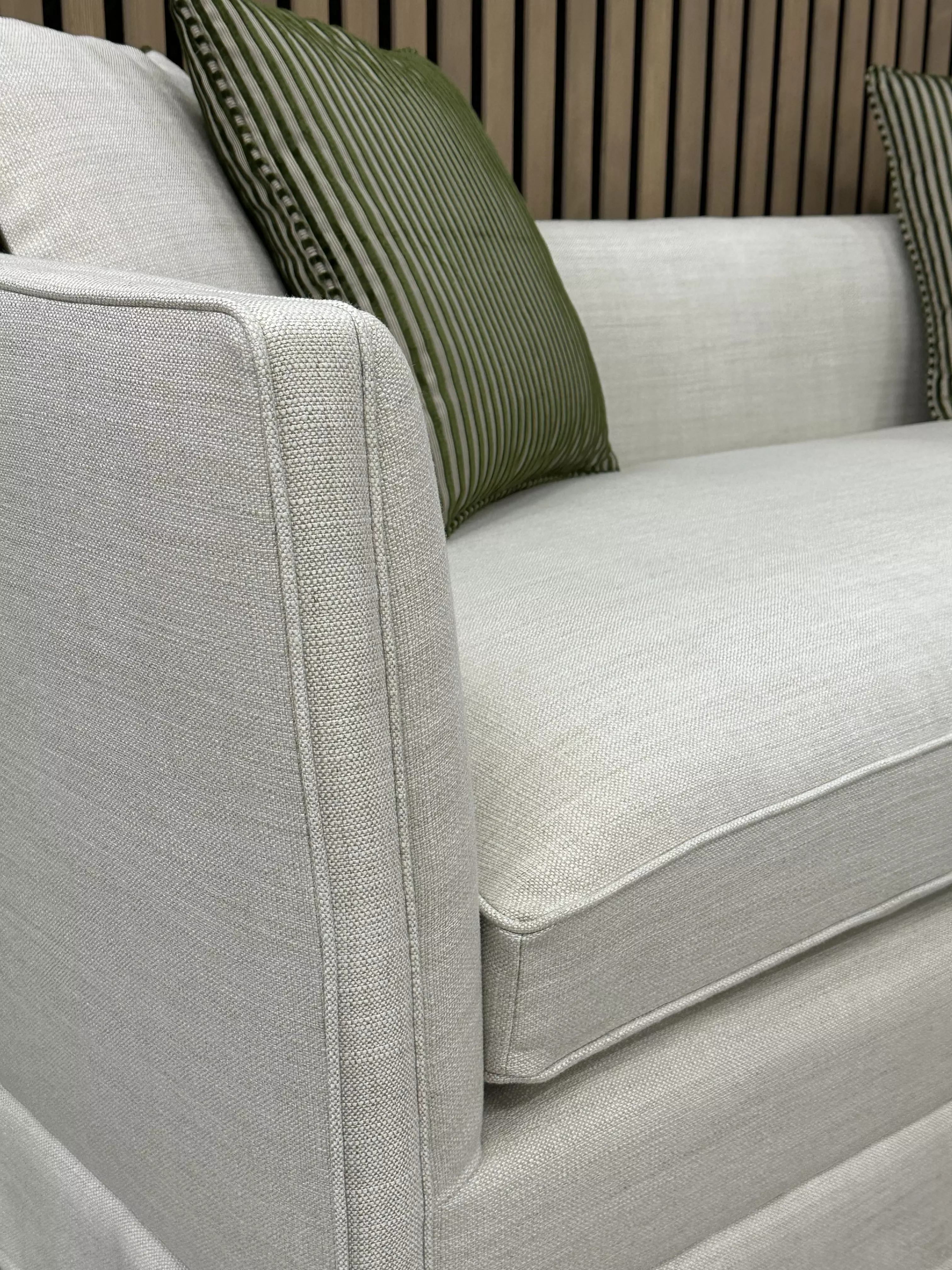 Zdjęcia detali przedstawiają mebel w materiale Bolt 06 - materiał dostępny jest na zamówienie klienta. Jesteś ciekawy jak wyglądałby mebel w innych materiałach czy też kolorach? Kliknij TUTAJ, aby zobaczyć zdjęcia i nagrania z niektórych naszych realizacji.