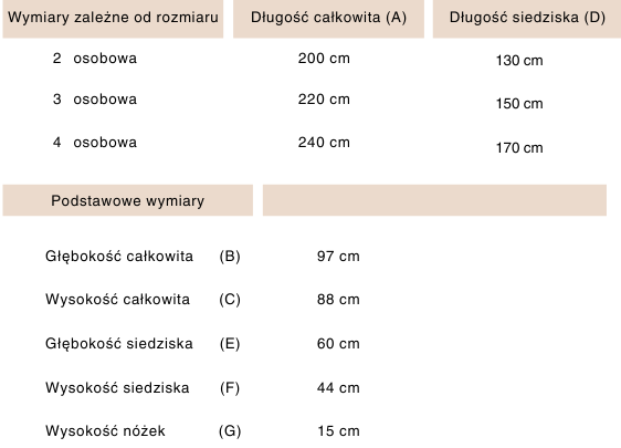 sofa 2 os. (1 paczka) : 205x102x67 cm