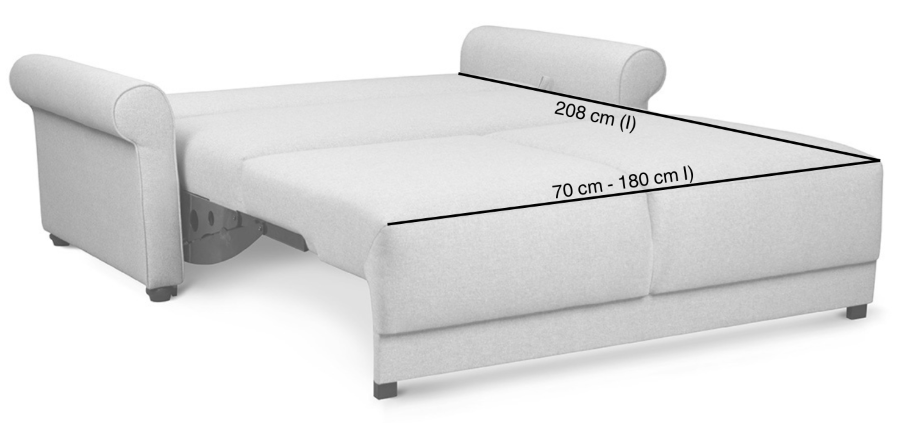 Poznaj rozkładaną sofę Susanna – połączenie komfortu i stylu z klasycznymi ramionami. Poczuj perfekcyjne połączenie wyrafinowania i komfortu dzięki rozkładanej sofie Susanna. Wyposażony w nasz system otwierania jednym dotknięciem One Touch, dzięki któremu z łatwością możesz przekształcić go z przytulnej sofy w niezwykle wygodne łóżko. Idealna do małych pomieszczeń lub wielofunkcyjnych salonów. Przede wszystkim nasza sofa rozkładana świetnie zaprezentuje się we wnętrzu nowocześnie urządzonego salonu lub pokoju dziennego. Funkcja spania zdecydowanie podnosi funkcjonalność naszego mebla. Dzięki temu możesz szybko przygotować miejsce noclegowe dla swoich gości. Samo rozkładanie mebla jest niezwykle proste, a powierzchnia do spania zapewnia miły i spokojny sen.