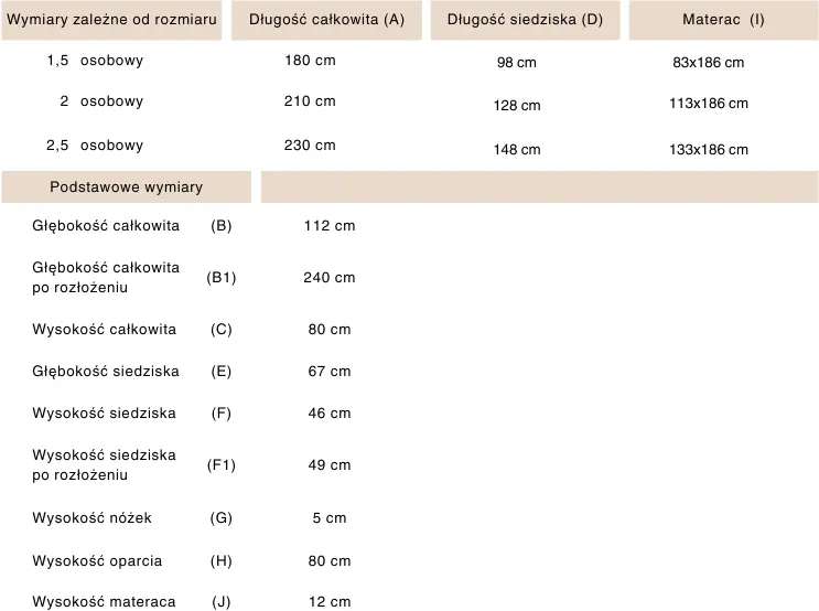 sofa 2,5 os. (1 paczka) : 232x114x75 cm