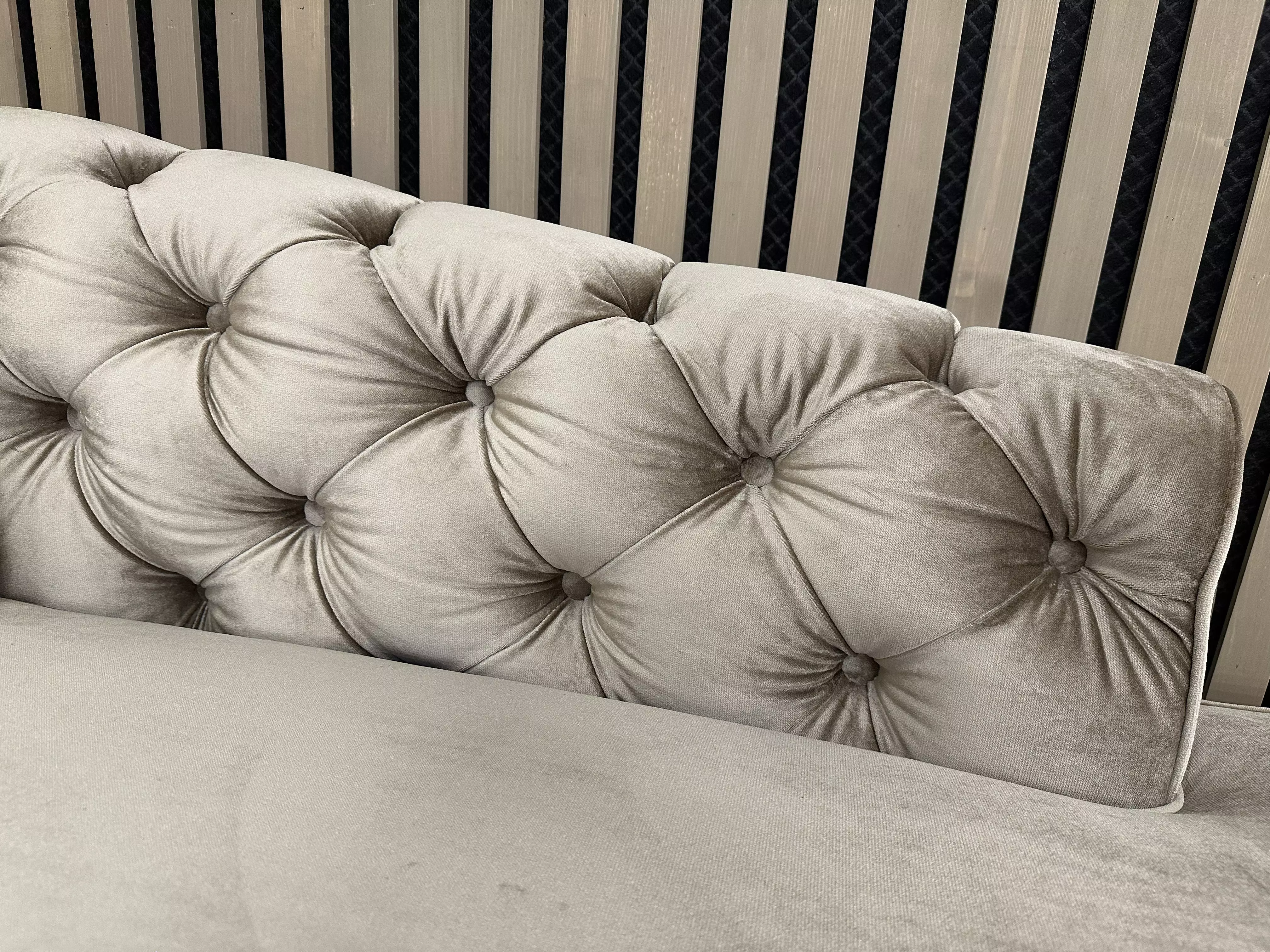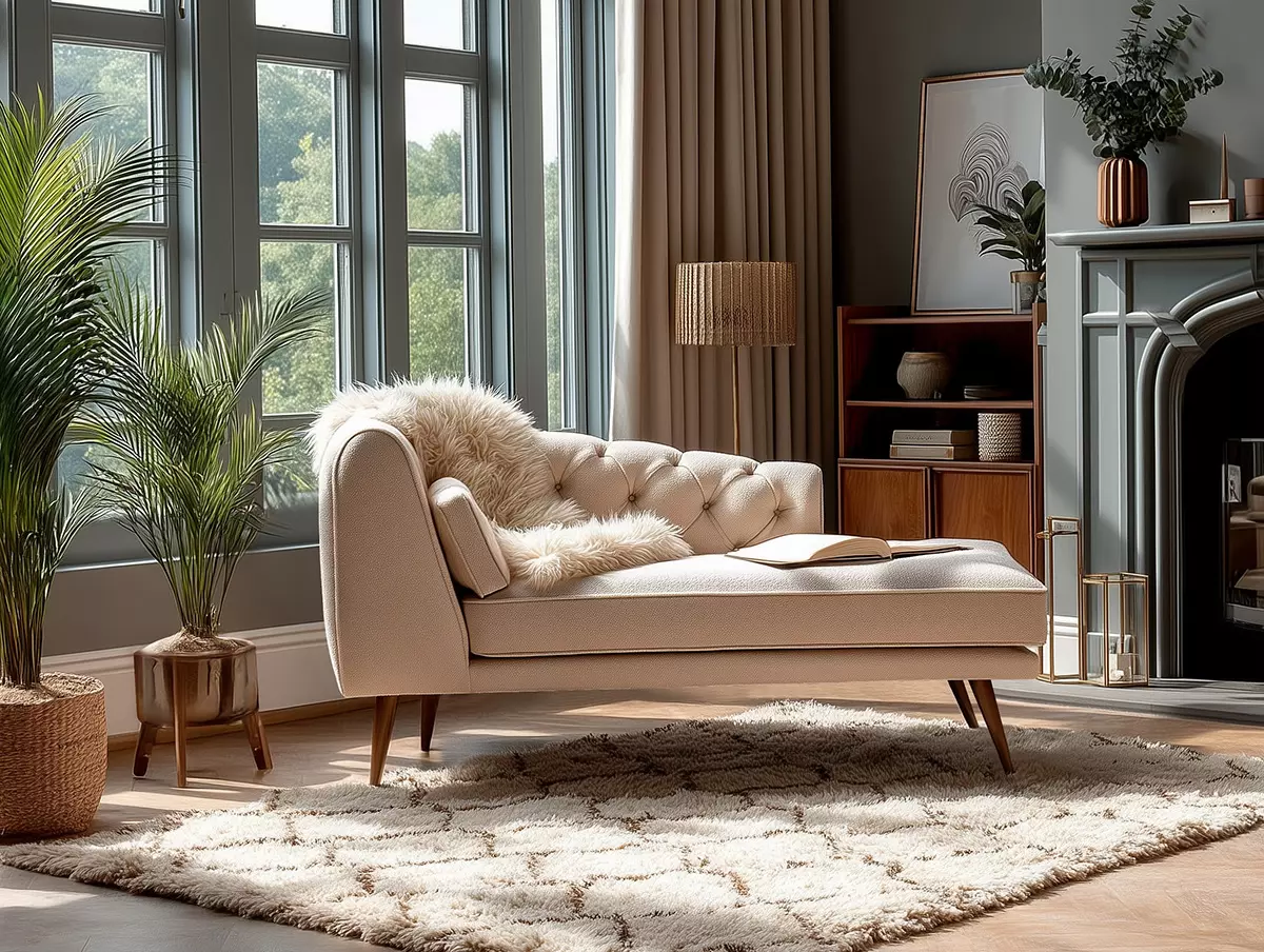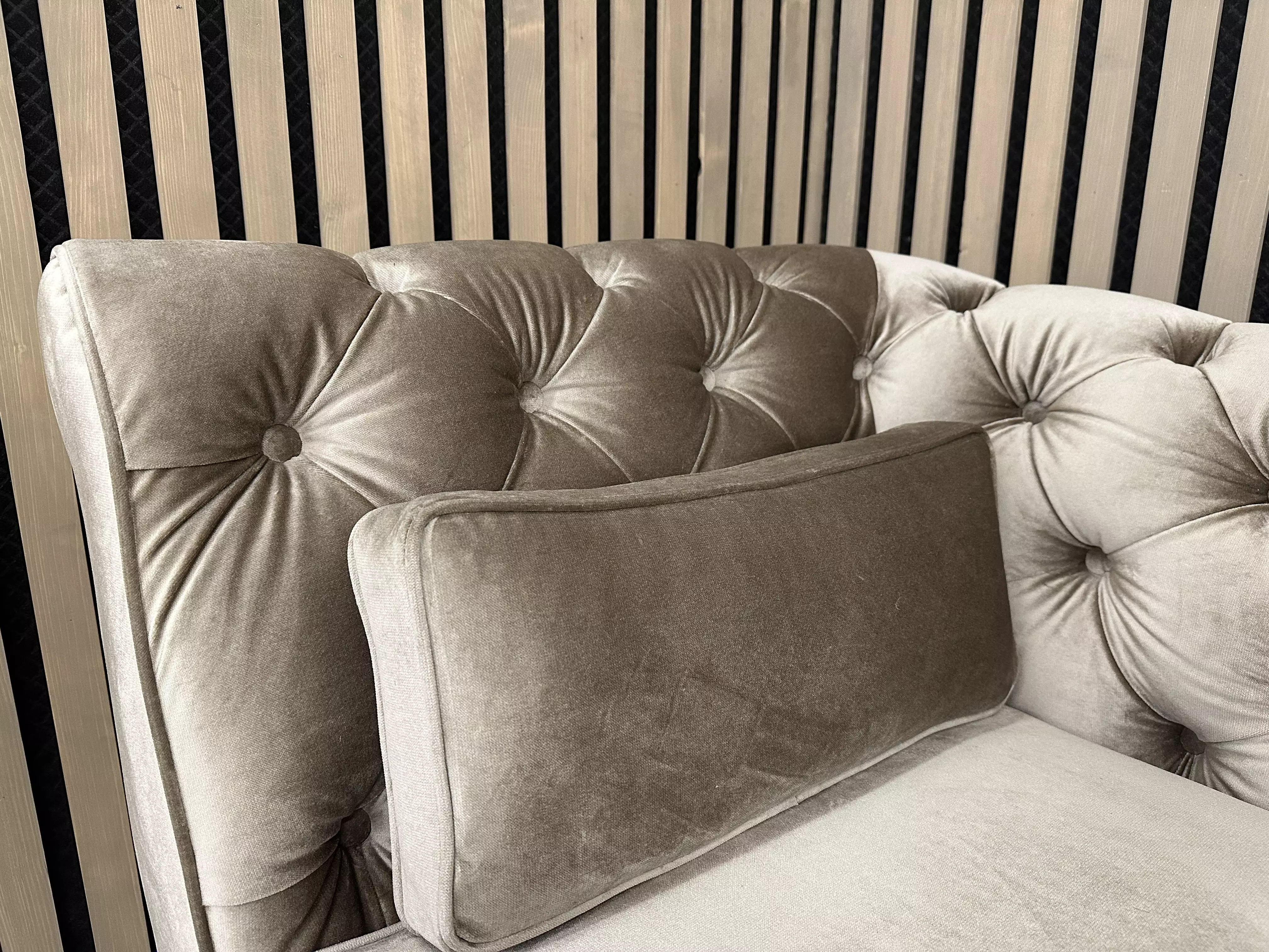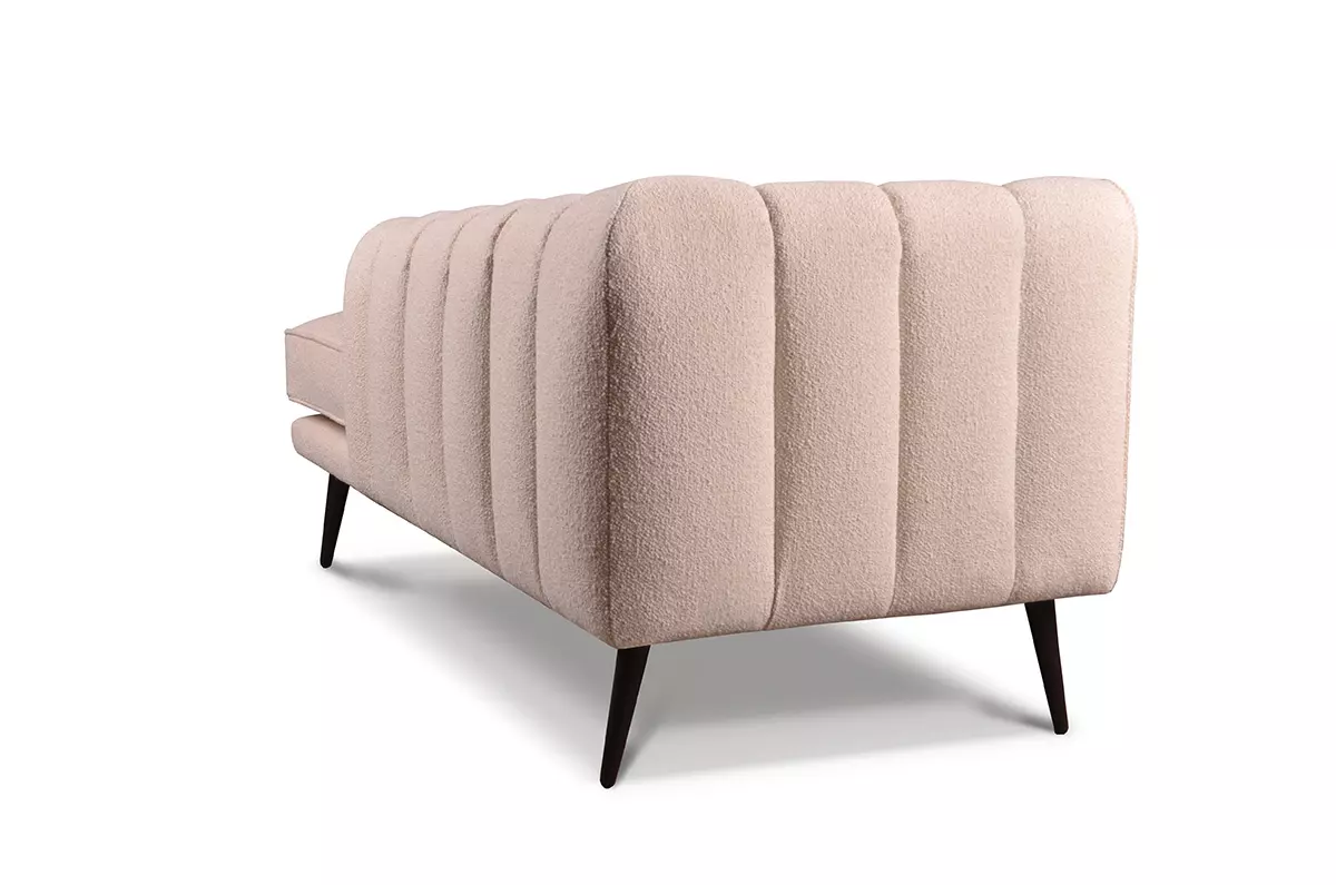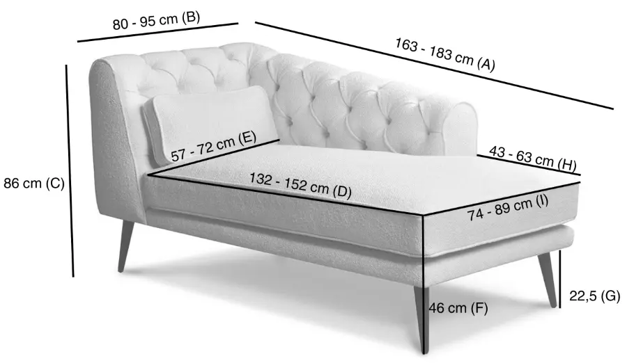 Szezlong Franco przyciąga uwagę ozdobnymi pikowaniami i prostymi przeszyciami na plecach. Dodatkowa poduszka wspiera idealnie część lędźwiową kręgosłupa. Wysokie, proste nóżki dodają nuty luksusu. Ten tapicerowany szezlong jest idealnym uzupełnieniem eleganckiego wnętrza, od salonu po sypialnie.