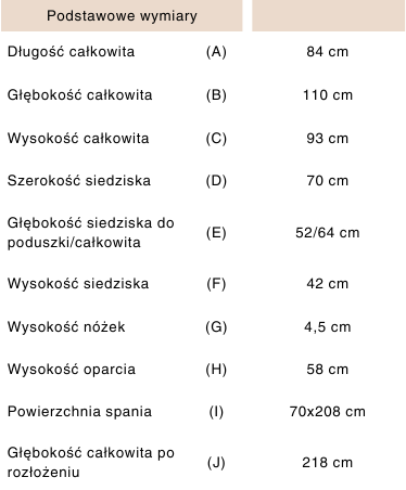*Wymiary mogą się różnić +/- 2 cm. Zdjęcia detali przedstawiają mebel w materiale Cloud 83.