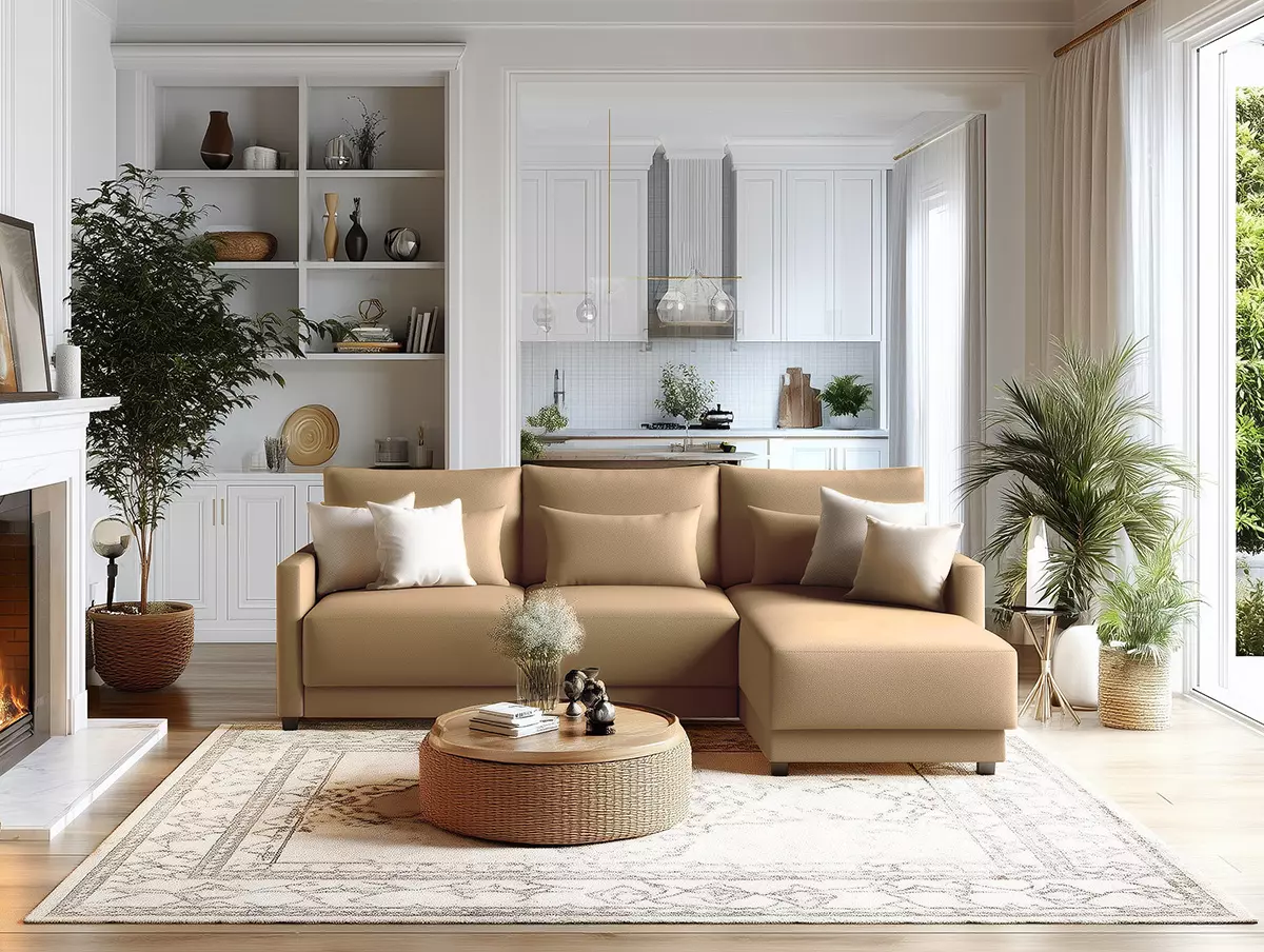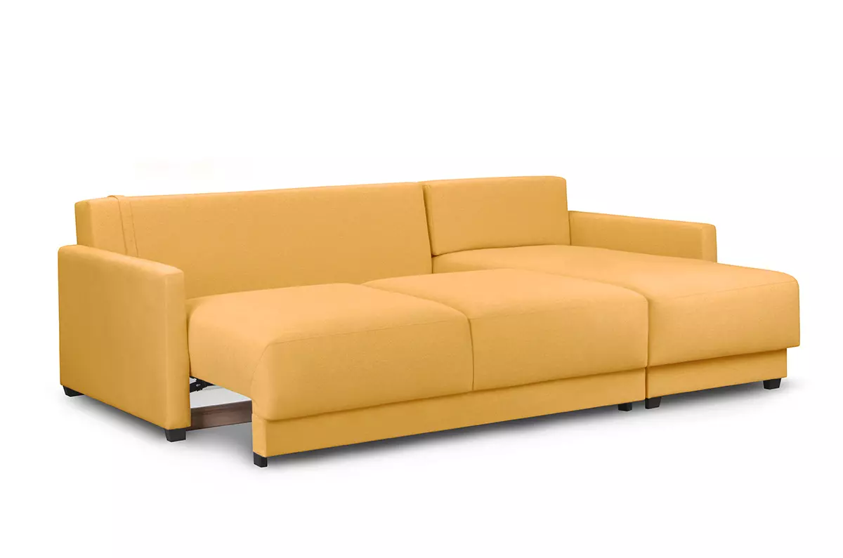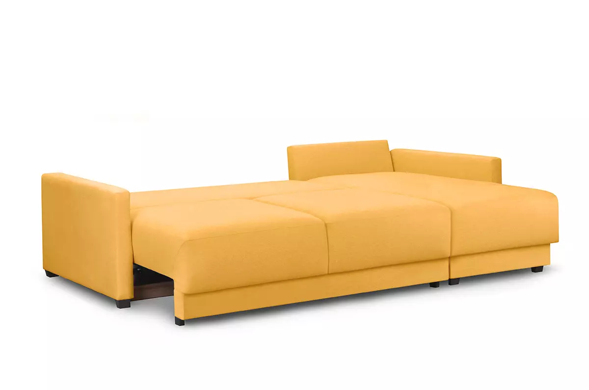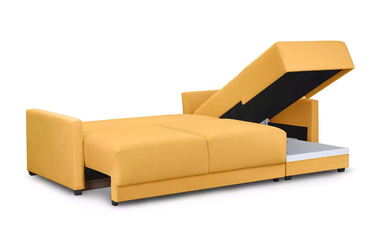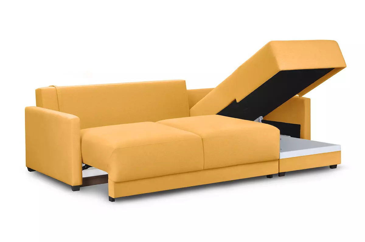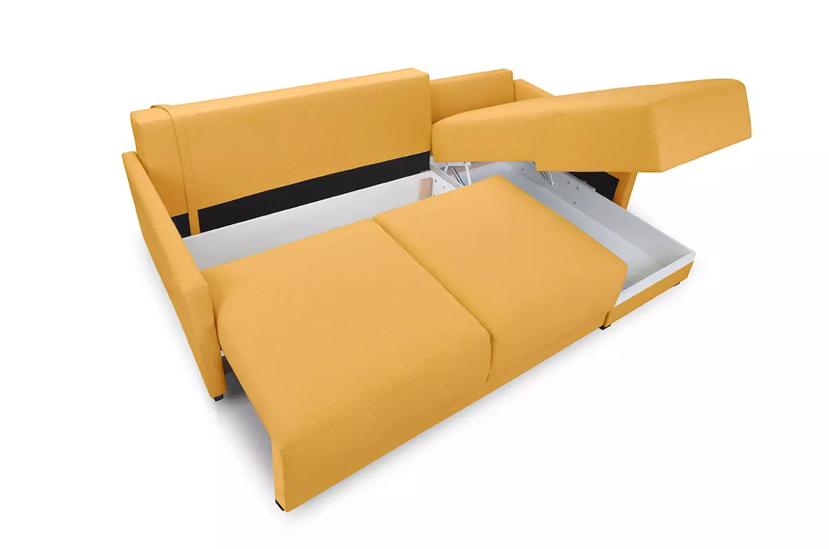 Dodatkowy atutem narożnika jest system otwierania one touch, dzięki któremu z łatwością przekształcisz narożnik w łóżko do spania, a w zamontowanych w nim dwóch pojemnikach znajdziesz miejsce, w którym możesz schować koce, jaśki ozdobne lub pościel, które nie będą Ci potrzebne podczas spania.