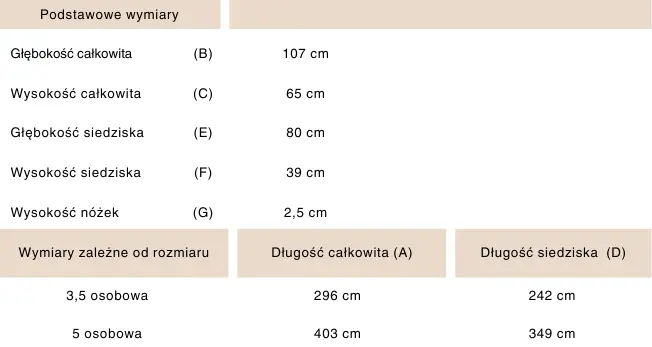 sofa 3,5 os. (2 paczki): 150x109x65 cm; 150x109x65 cm
