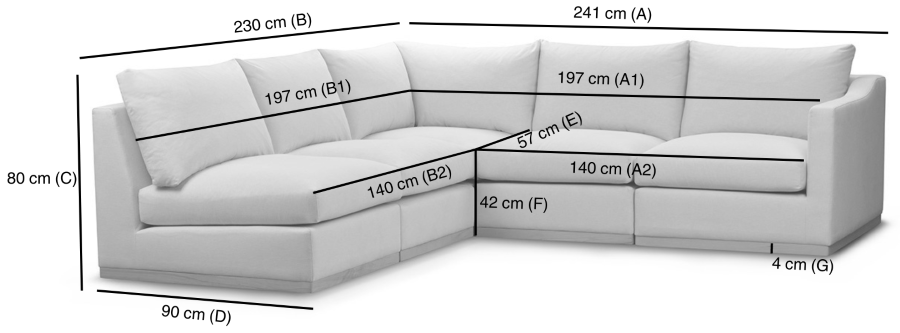 narożnik (5 paczek): 92x72x82; 92x72x82; 92x92x82; 92x72x82; 83x92x82 cm