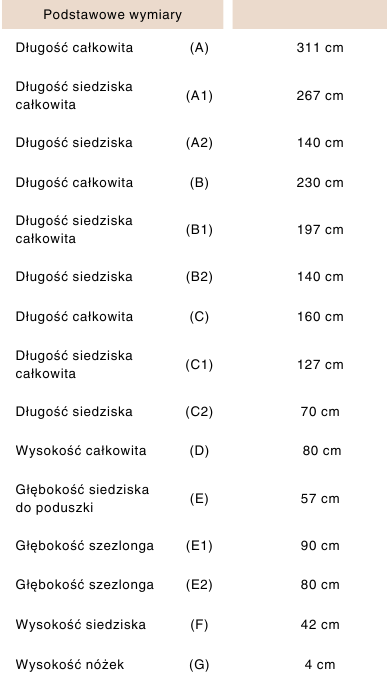 narożnik (7 paczek): 92x72x44; 92x72x82; 92x92x82; 92x72x82; 92x72x82; 83x92x82; 82x72x44 cm